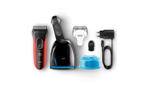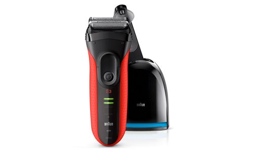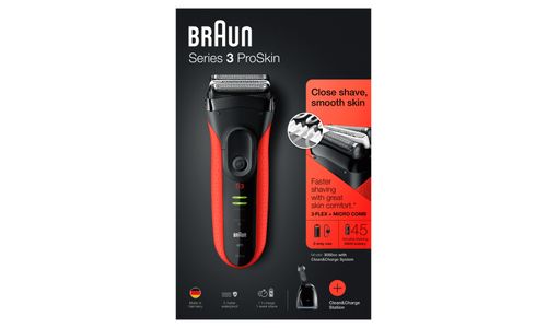 Series 3 ProSkin 3050cc oplaadbaar elektrisch scheerapparaat met Clean&Charge-systeem, rood