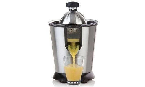 Fruitpers met hendel in roestvrijstalen afwerking.