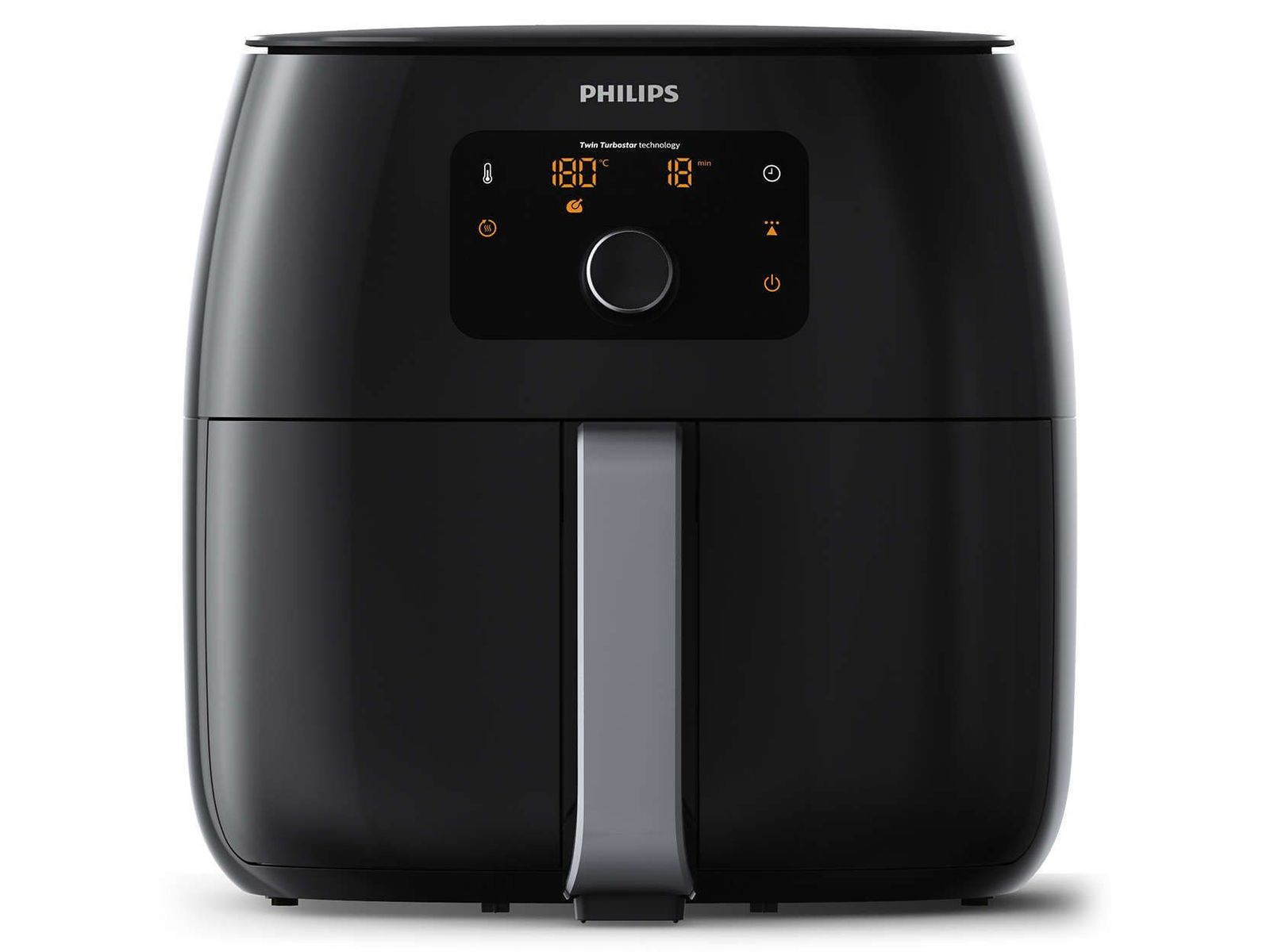 De Philips Airfryer XXL gebruikt warme lucht om uw favoriete gerechten te frituren, met weinig tot geen toegevoegde olie. De nieuwe Twin TurboStar-technologie is speciaal ontworpen om vetten uit het eten te onttrekken, waardoor dit de gezondste manier is om uw eten te frituren.