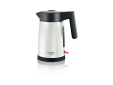 Of je nu een kopje thee voor het bezoek of een stomend hete bouillon bereidt, deze harde werker staat altijd voor je klaar. Deze nieuwe waterkoker met een ruime inhoud van 1,25 L is slim en efficiënt. Hij oogt modern ondanks zijn ronde retrolook en is daarmee een stijlvolle aanvulling op je andere keukenapparaten. Het roestvrijstalen ontwerp van de waterkoker zorgt ervoor dat hij licht, duurzaam, snel en gemakkelijk te gebruiken is. Met zijn inhoud van 1,25 L kookt het water snel en kun je het handig in een kom of pan gieten. De waterpeilstreepjes aan de binnenkant zijn gemakkelijk te zien door de brede vulopening. De retrostijl komt steeds weer terug in het design: de ronde lijnen zijn naast de ketel zelf ook in het glanzende aluminium deksel, het handvat en zelfs het ledlampje van de aan/uit-knop terug te vinden. De verwijderbare kalkfilter is gemakkelijk te reinigen.