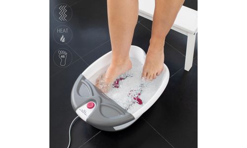 Onze voeten dragen veel bij aan ons welzijn. Een paar minuten verzorging zijn al genoeg om zwaar belaste voeten weer beter te laten voelen en je vitaliteit voor de volgende dag te geven. De FS 300 voetspa van medisana biedt hiervoor de beste omstandigheden en geeft je voeten een intensieve reflexmassage. De ontspannende bubbel- en vibratiemassage bevordert de bloedcirculatie, weefsellagen worden beter van bloed voorzien en gespannen spieren kunnen ontspannen.