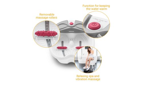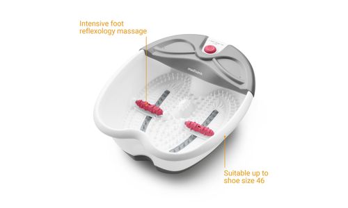 De FS 300 voetspa van medisana geeft uw voeten een intensieve reflexologiemassage - zodat ze weer fit zijn voor de volgende inspanningen. De ontspannende bubbel- en vibratiemassage bevordert de bloedsomloop en is perfect voor vermoeide voeten.